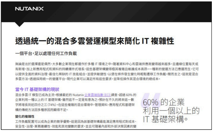 《透過統一的混合多雲營運模型來簡化 IT 複雜性》將為你揭示如何透過 統一平台,實現跨私有雲、公有雲與邊緣基礎設施的一致管理,不僅提升 效率與可見性,更助你以更低的成本推動數位轉型。